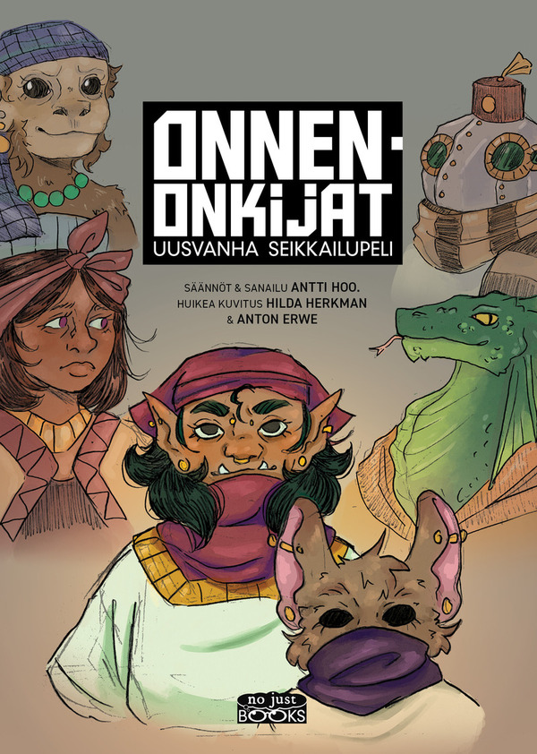 Kirjan teksti ja design Antti Hoo. Kuvitus Hilda Herkman ja Anton Erwe. Ei tekoälyn häivääkään.